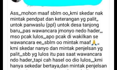 1,697 X dibaca hari ini EMPAT LAWANG I SUMATERA SELATAN – Netralitasnews.com – Akun Baim Bungsu YM Bertanya di Medsos Tentang Penetapan Panwaslu Kelurahan/Desa dinilai Janggal. Selasa...