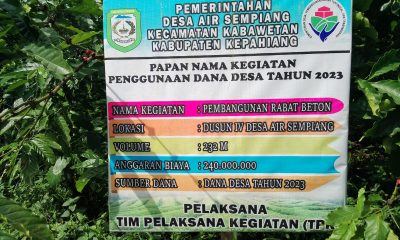 2,271 X dibaca hari ini KEPAHIANG, Netralitasnews.com – Pekerjaan pembangunan jalan rabat beton oleh Pemerintah Desa Air Sempiang Kecamatan Kabawetan, yang mengalokasikan dana sebesar Rp 240 juta...
