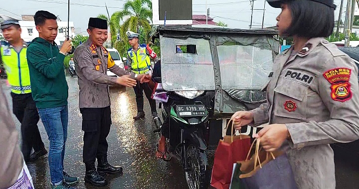 Takjil diberikan langsung oleh Kapolres kepada warga masyarakat khusus penggendara kendaraan bermotor roda dua dan ojek gandeng.