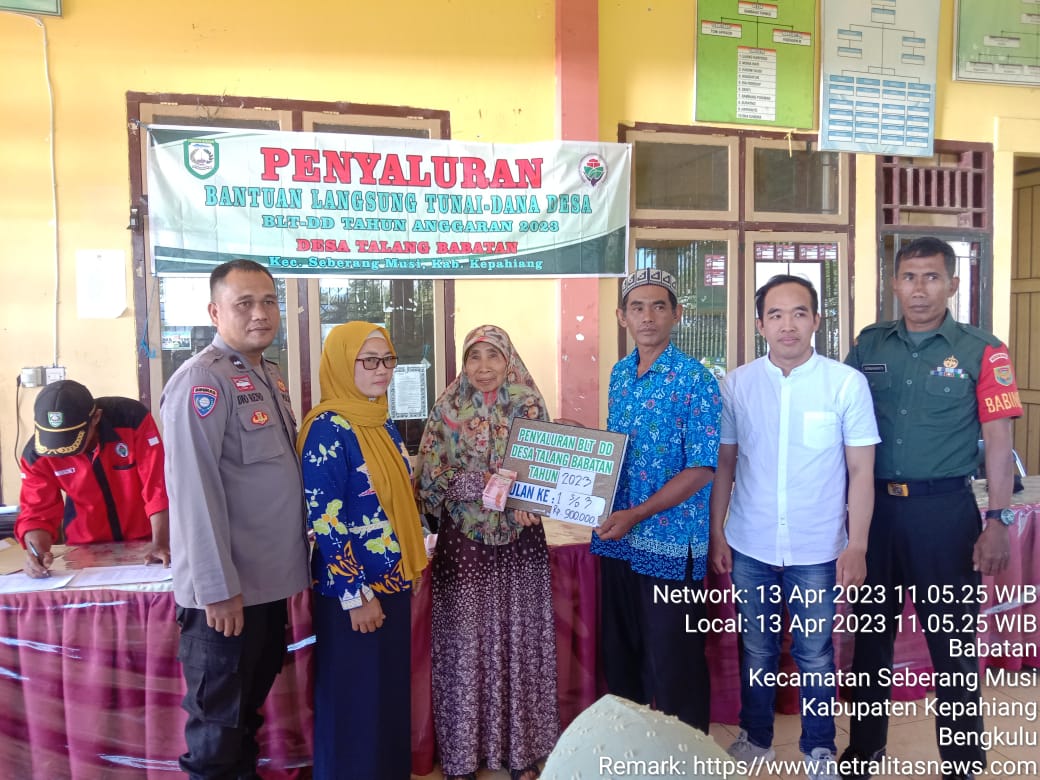 KEPAHIANG, Netralitasnews.com – Menyambut hari raya idul fitri pemerintah desa Talang Babatan Kecamatan Seberang Musi Kabupaten Kepahiang Provinsi Bengkulu salurkan Bantuan Langsung Tunai Dana Desa tahun anggaran 2023