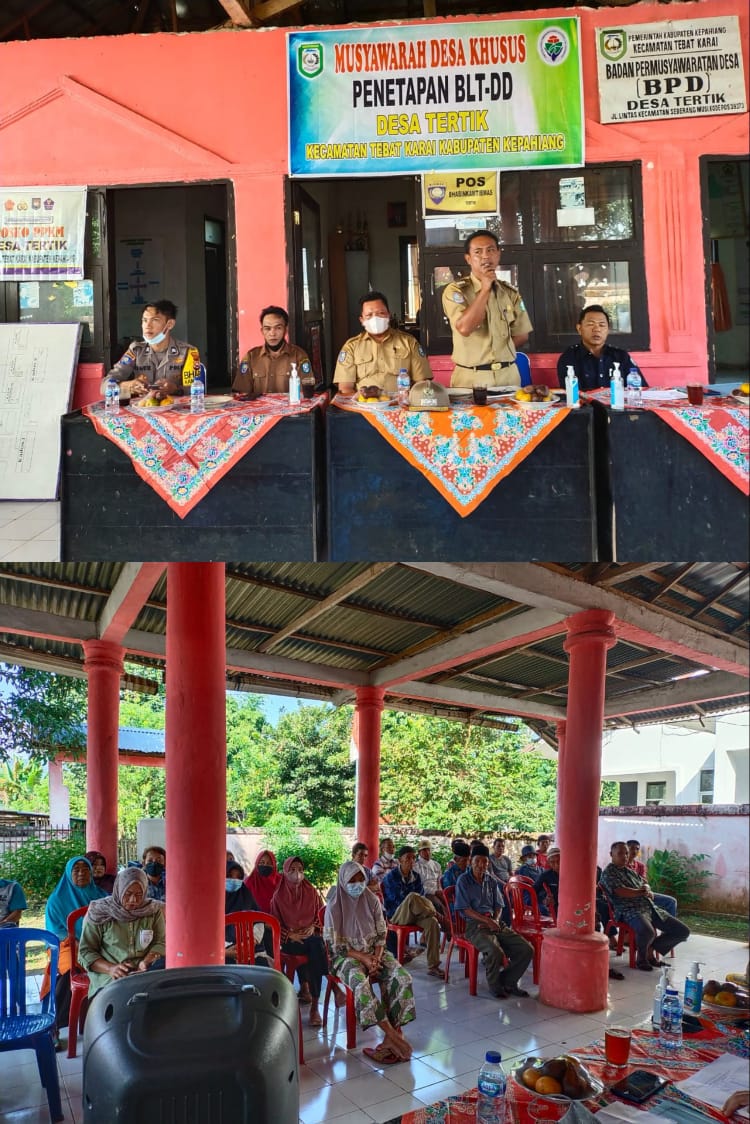 Disela acara ini Camat Tebat karai menyampaikan “ketika mendapatkan bantuan langsung tunai ini saya sangat berharap kepada masyarakat khususnya masyarakat desa tertik agar dapat menggunakannya sesuai dengan kebutuhan yang telah ditetapkan oleh pemerintah pusat dan saya berharap juga kepada masyarakat yang belum mendapatkan bantuan ini agar dapat mengerti mengingat dana desa kita di tahun ini banyak dipangkas jadi Sekali lagi saya berharap pengertiannya”, ungkap Renal Camat Tebat karai