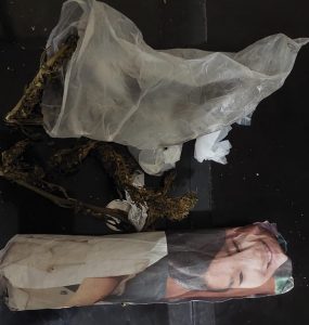 – 1 ( satu) bungkusan kecil kertas koran paket Narkotika jenis Ganja, seberat lebih kurang 1 Ons ( 28,35 gram )