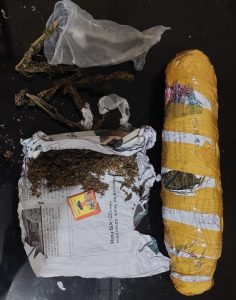 Setelah dilakukan penggeledahan disalah satu saku celananya didapati Kertas Cigaret ( Papir ) utk melinting tembakau, dan kemudian tertangkap tangan didapati , 1 (satu) bal bungkusan yg diduga Narkotika Jenis Ganja, seberat lebih kurang 1/2 Kg (500 gram) yang ditemukan di dalam bagasi bawah jok sepeda motor yang dikendarai oleh kedua laki2 tersebut.