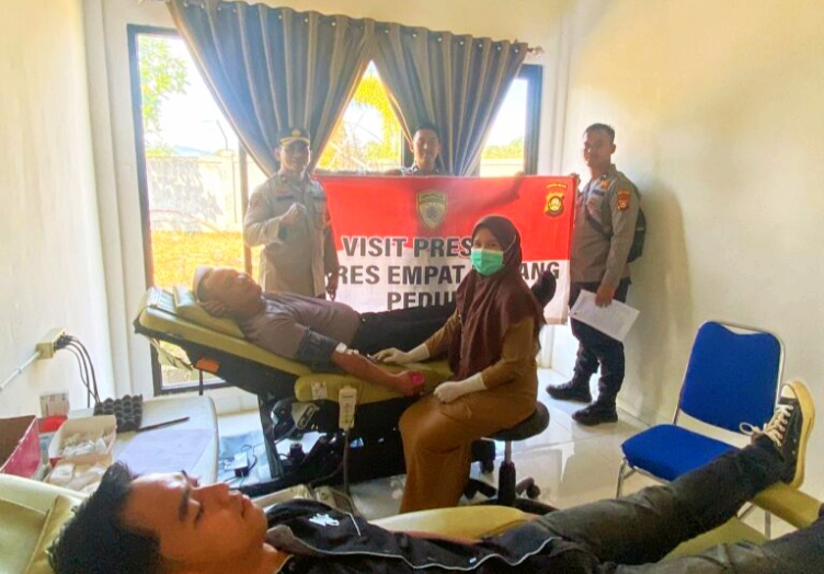 EMPAT LAWANG I AUMATERA SELATAN, Netralitasnews.com – Polres Empat Lawang Polda Sumsel menggelar kegiatan Visit Presisi Polres Empat Lawang berupa kegiatan Donor Darah terhadap Personil Polres Empat Lawang yang bekerjasama dengan Bank Sumsel Babel cabang Empat Lawang guna membantu Palang Merah Indonesia (PMI) memenuhi kebutuhan permintaan Darah karena kekosongan stok darah, Selasa (21/03/23).