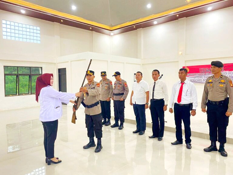 Penyerahan 1 (satu) pucuk senjata api (senpi) ini diserahkan oleh masyarakat secara sukarela melalui Ibu Eva Sari, S.H., M.H seorang Tokoh masyarakat dan juga ASN di Kecamatan Saling yang diterima langsung oleh Kabag SDM Kompol M Aidil Fitri, S.H., M.M.