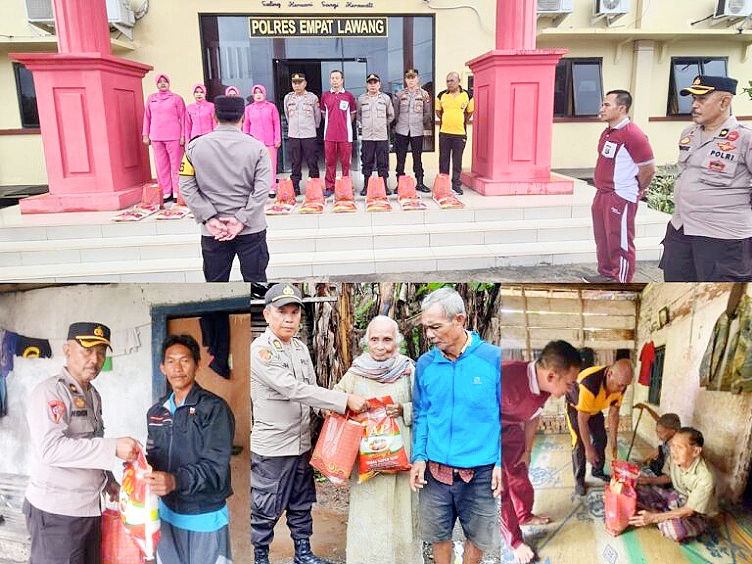 Kegiatan membagikan sembako ini dilakukan oleh para PJU dan Personil Polres Empat Lawang yang dilakukan dibeberapa titik wilayah Hukum Polres Empat Lawang dan dibagikan untuk masyarakat kurang mampu.
